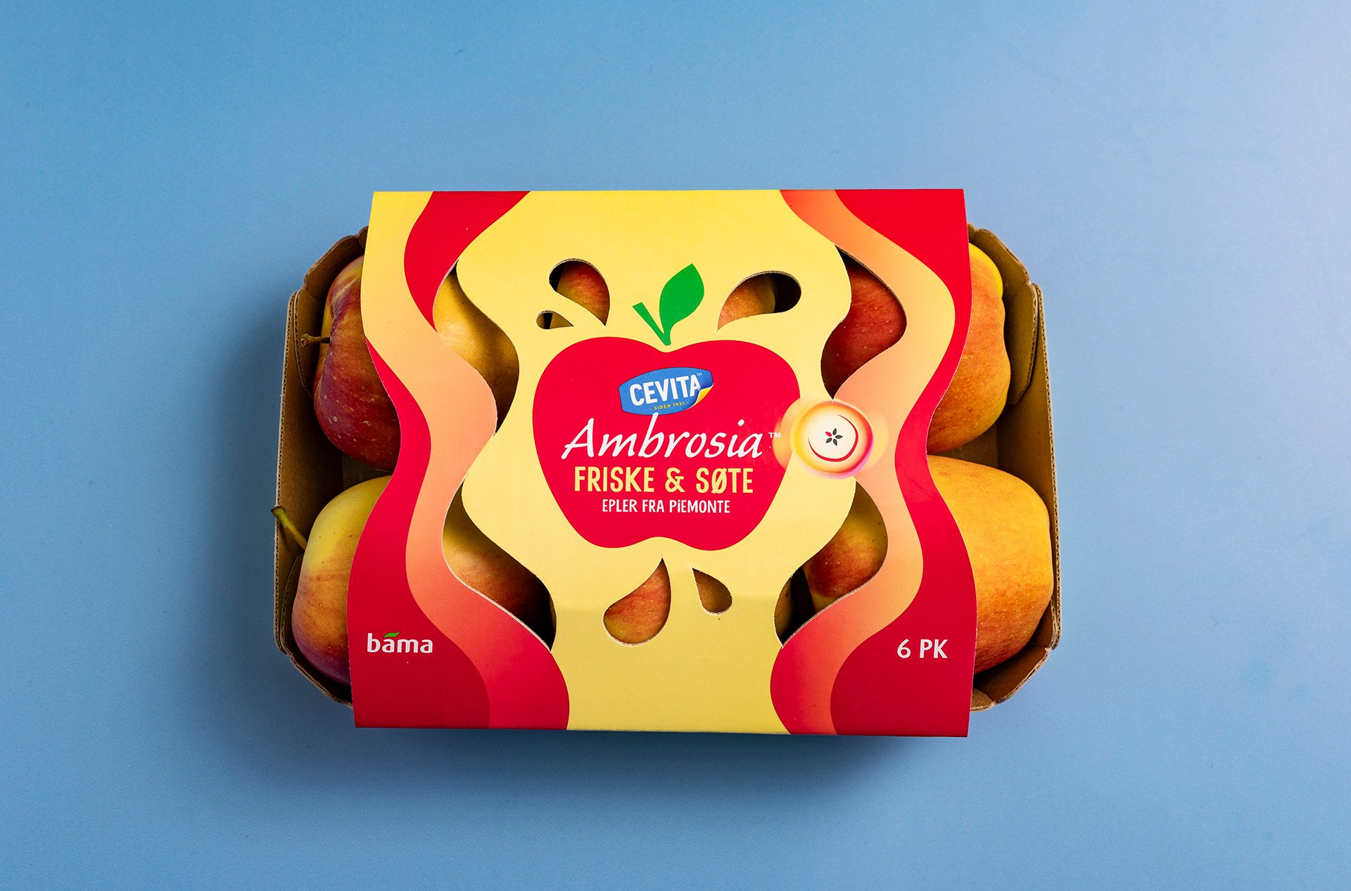 Vi har oppdatert Ambrosia-emballasjen med nytt design og nye farger, slik at eplene blir ekstra enkle å finne i butikken. Det er selvsagt de samme supergode eplene på innsiden.