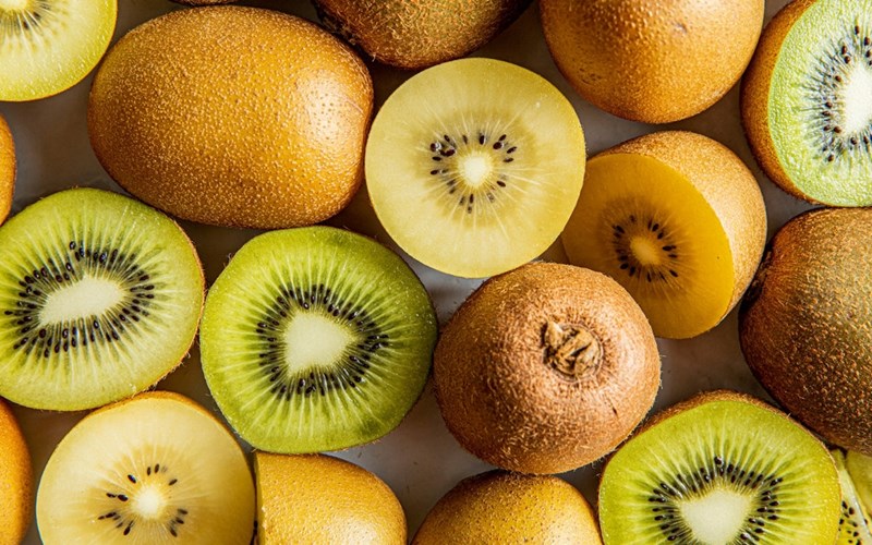 Den grønne kiwien inneholder store mengder actinidin, som er et enzym. Actinidin, i kombinasjon med den grønne kiwiens syreinnhold, kan derfor bli litt for frisk i smaken for enkelte. Gul kiwi derimot, inneholder mindre actinidin, som gjør at den er mindre syrlig og oppleves som en mildere kiwi-variant.