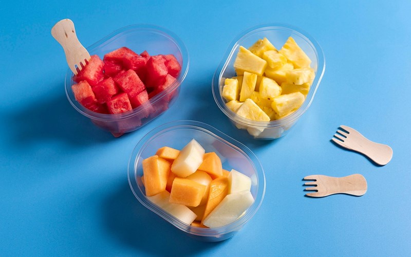 Store frukter som ananas og meloner kan være upraktiske å håndtere. De er tunge og det blir mye avkapp når de skal deles. Da er det topp med et alternativ! Ferdig kuttet frukt i praktiske beger gjør det enkelt å spise mer frukt og ta det med seg hvor man vil – enten det er bort til sofaen, på trening eller til lunsjen på jobben.