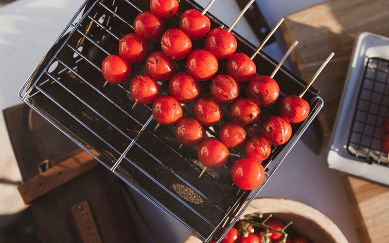- Del grønnsakene i forholdsvis store biter, slik at væsken i grønnsakene ikke fordamper helt på grillen. Neper kan for eksempel deles i to før de grilles, og deretter deles i mindre biter etterpå.