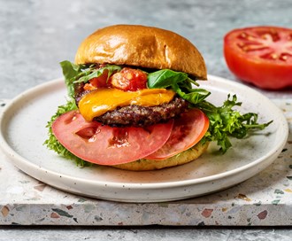 - Skjær tomatene i skiver, og legg dem over kikertpuréen.