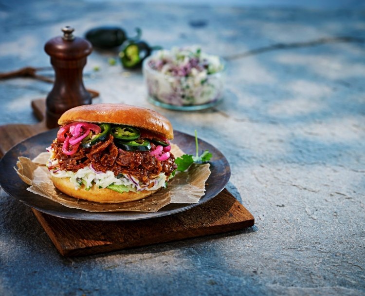 - Stek VegMe pulled marinert i matolje noen minutter og server i varm brød sammen med salat, paprika, coleslaw og syltet rødløk.